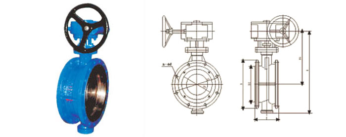 法蘭式蝸(wō)輪傳動硬密(mì)封蝶閥(D341H-10 16)主要(yao)連接尺寸
