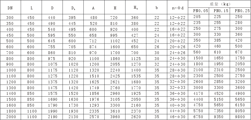 F743X-(0.5、1.0、1.5、2.0)液動扇(shàn)形盲闆閥主(zhǔ)要外形連及(ji)接尺寸表